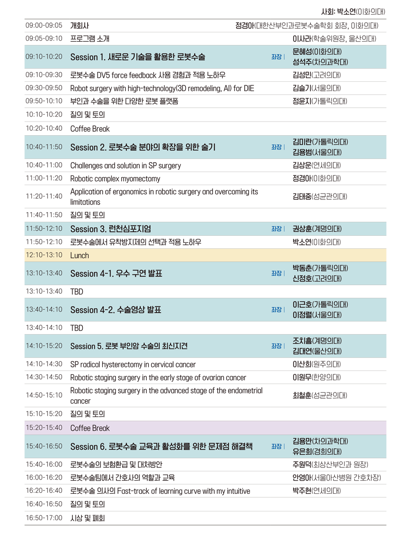 | 08:50-09:00 | 개회사, 회장님 말씀 | ||