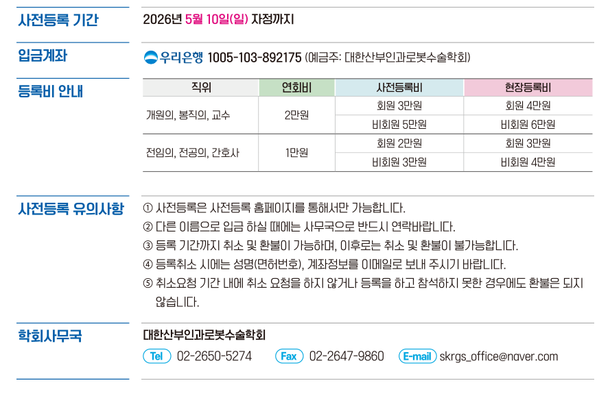 • 사전등록은 학회 홈페이지(www.sgo.or.kr)를 통해서만 가능합니다.
